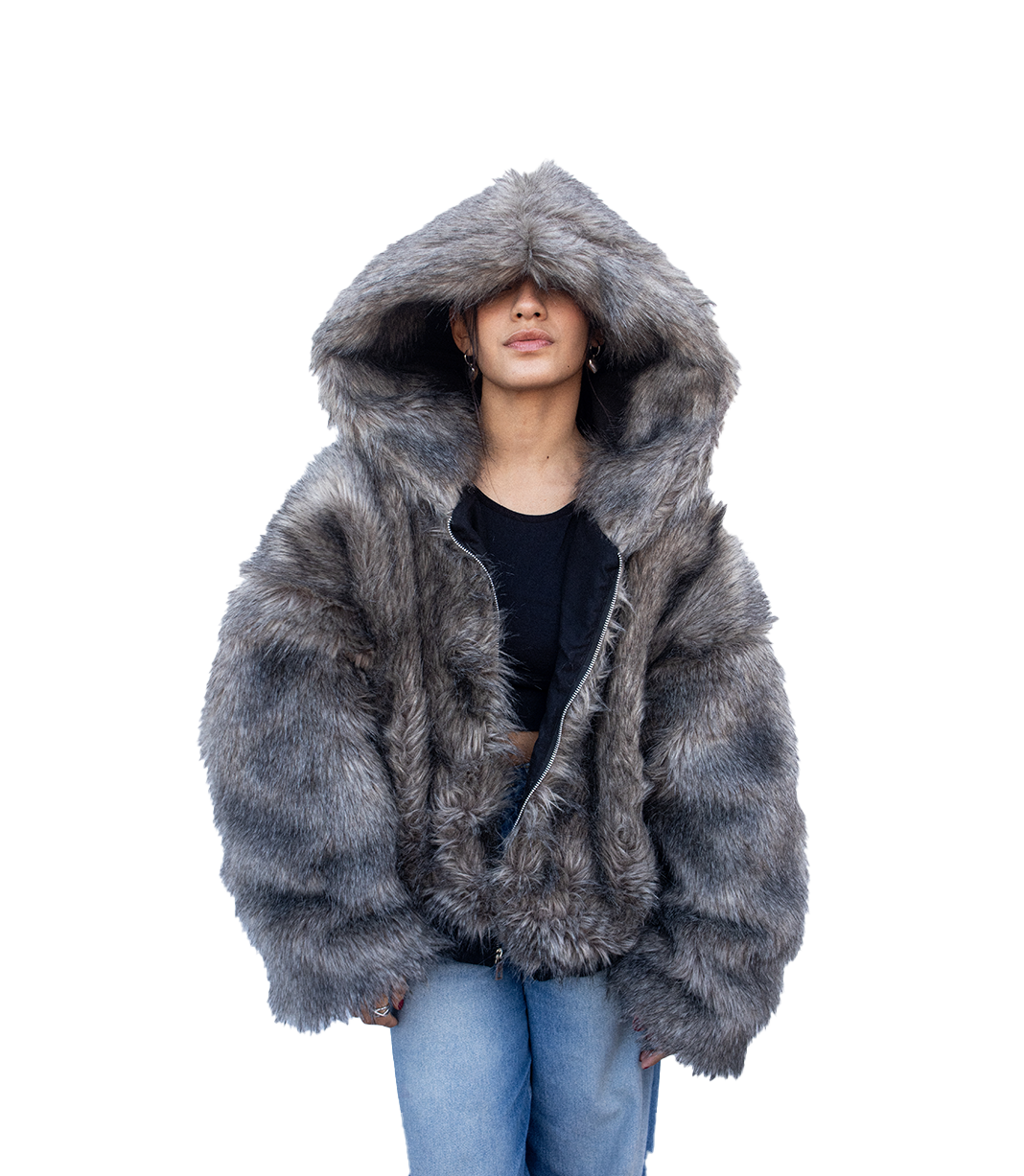 Forro interno para mayor comodidad y ajuste relajado. Debido a la naturaleza del material, pueden presentarse ligeras variaciones en la caída y el volumen del pelaje, haciendo que cada prenda sea única.